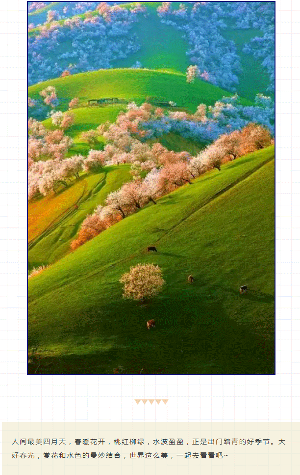 各色争艳的百花绽放,像个少女般初晴蜜意地嫣笑着向你走来,甜淡的粉色似给静谧的水色添了点腮红,化了个一年颜值最高妆~