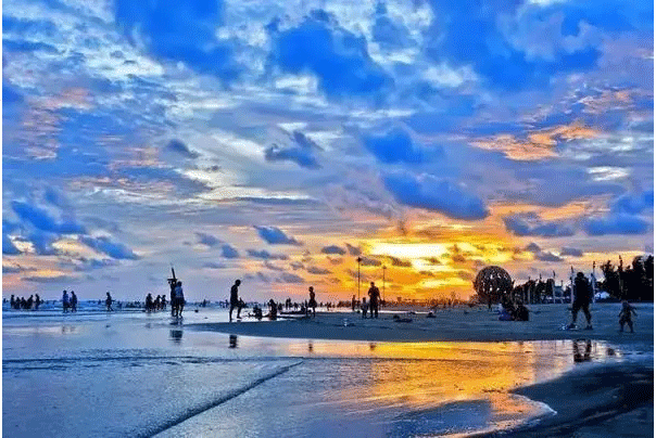 这里的海,美得像个意外。虽无花的映衬,却有层层叠染的天空彩霞作伴,照在海面波光潋滟,共同赏尽日出日落人间芳泽。