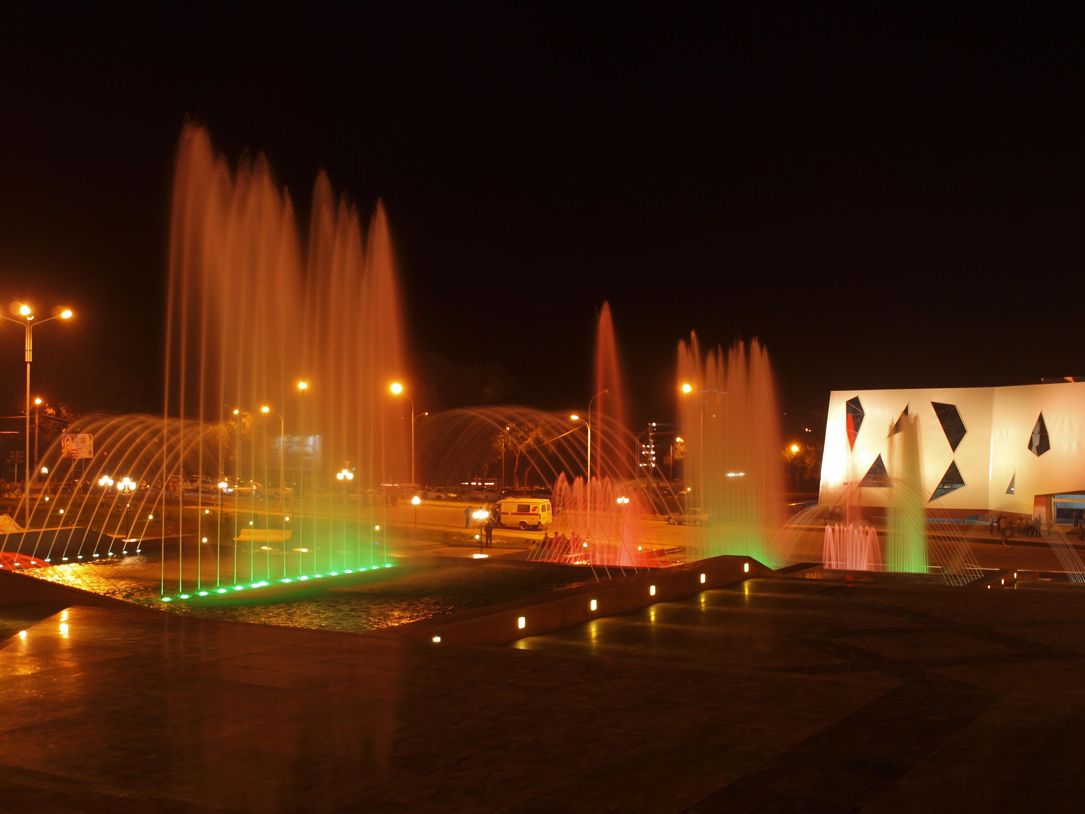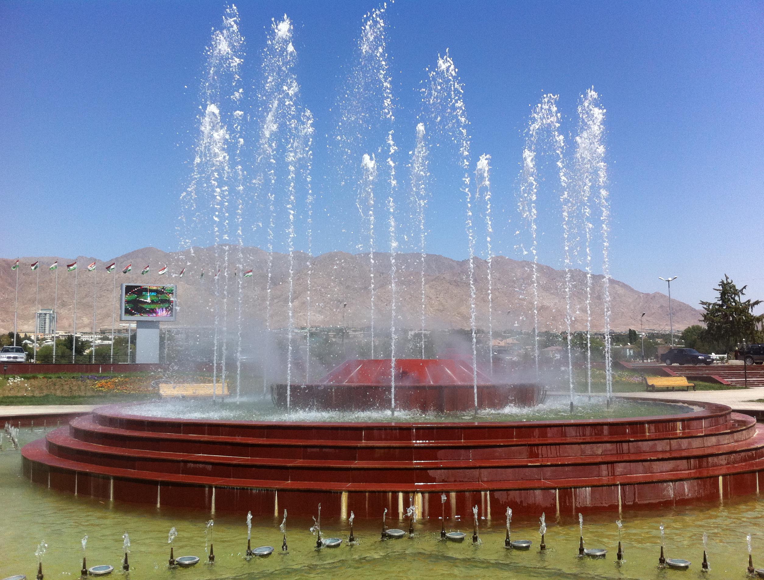 塔吉克斯坦胡占德市城市广场音乐喷泉